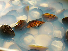国内のシジミは、ヤマトシジミ、セタシジミ、マシジミの3種で、セタシジミは琵琶湖水系の固有種、ヤマトシジミは河口や、海水と淡水が混じり合う汽水湖などにすみ、マシジミは淡水の河川や湖沼に生息しています。ただしセタシジミ、マシジミが激減した影響で、現在、国産として出回っているシジミの大半は漆黒のヤマトシジミです。